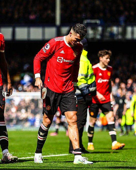4月9日,英超第32轮,曼联客场0比1负于埃弗顿埃。输掉这场比赛,曼联离英超前四越来越远。比赛中没能进球,C罗更显郁闷。下场时,一个埃弗顿小球迷对着他拍,C罗挥手把小球迷的手机打到了地上。